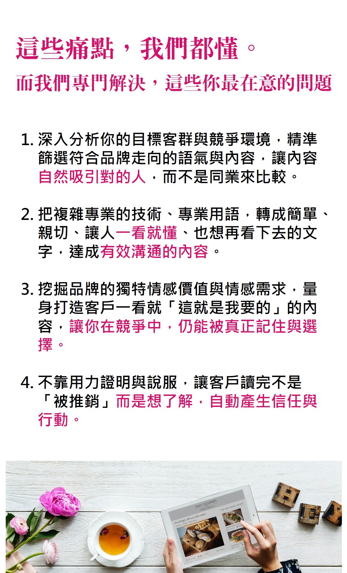 專業視角文案,幫品牌說出最動人的話,提升轉單率